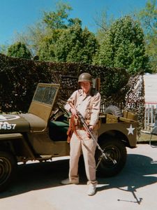 Joe and his unit was crossing the flooded Roer River in small 10 man boats. His boat was caught in the current and stopped across the river in front of a German machine gun. The Germans opened up on them and all the men in Joe's boat were killed. Joe was holding all the rifles in the back of boat and was knocked into the water. Joe fought to the Elbe River where the Germans were surrendering by the thousands. Joe was awarded the Bronze Star for heroic service.